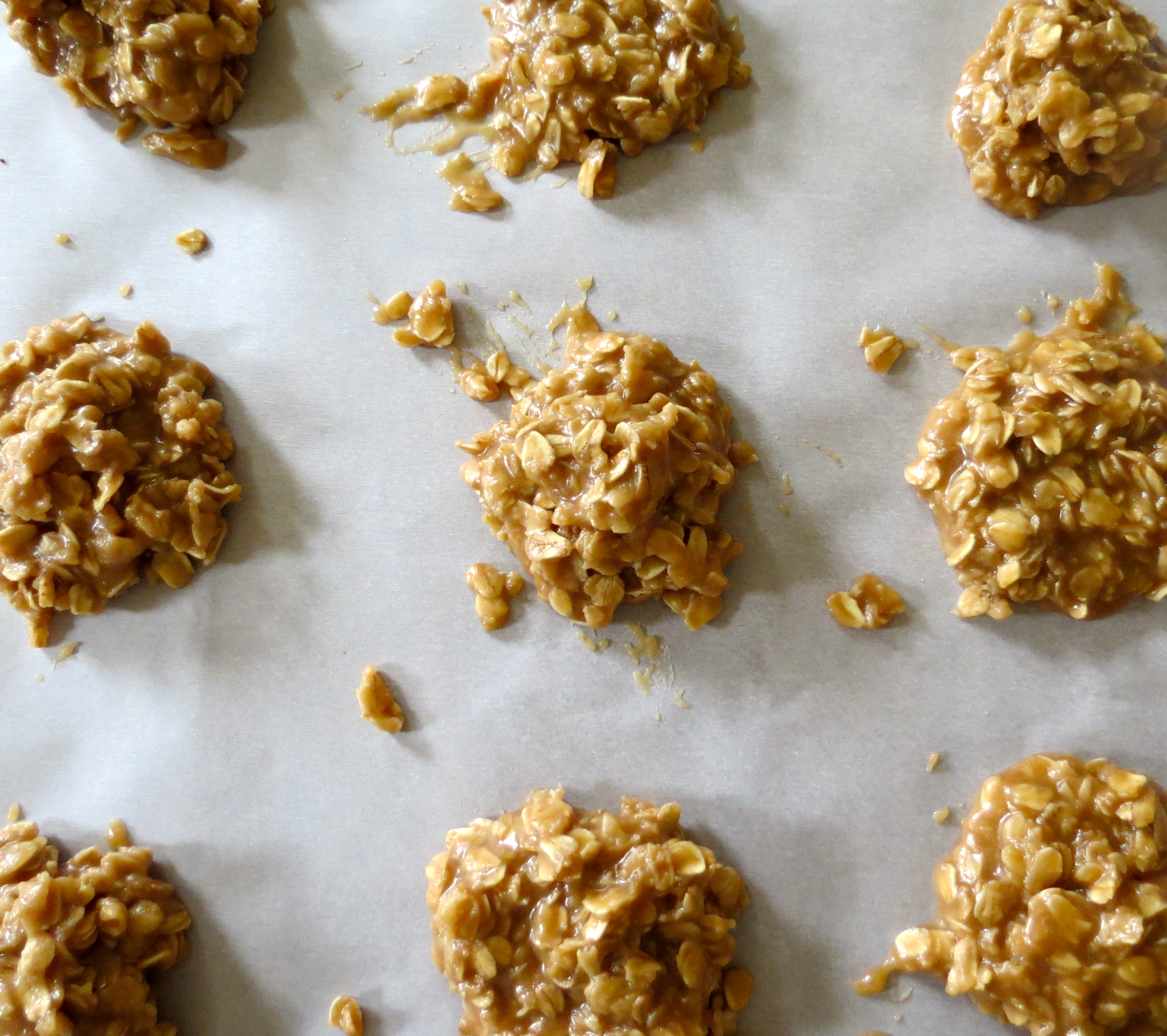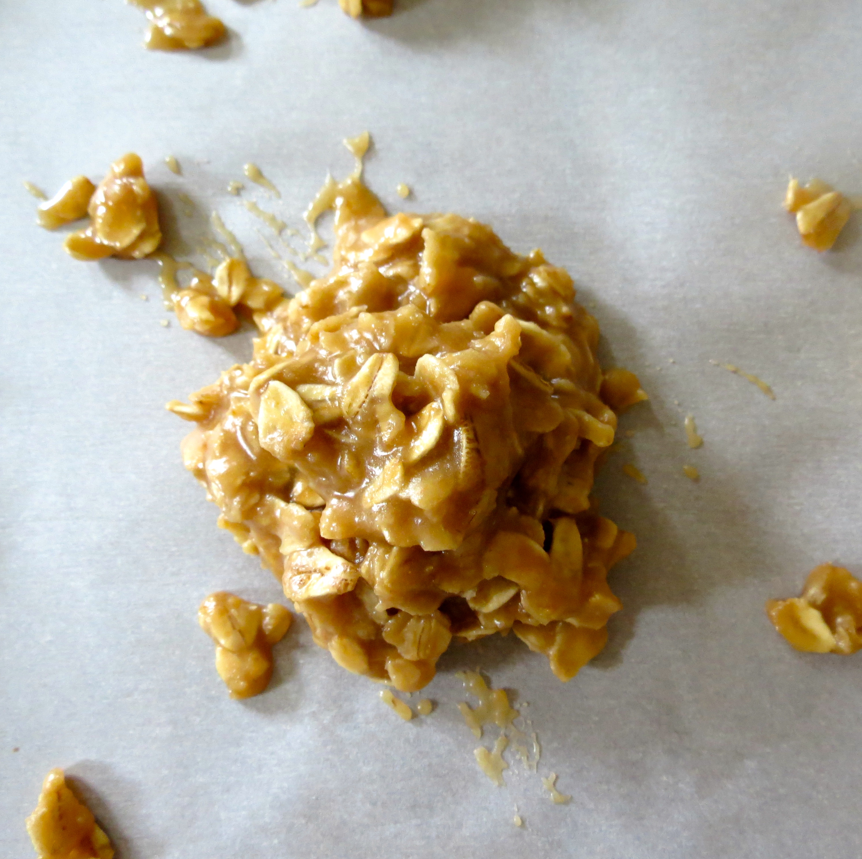 4. Drop large spoonfuls on to parchment paper and wait at least 30 minutes for cookies to firm up